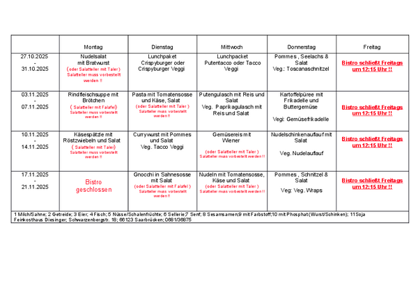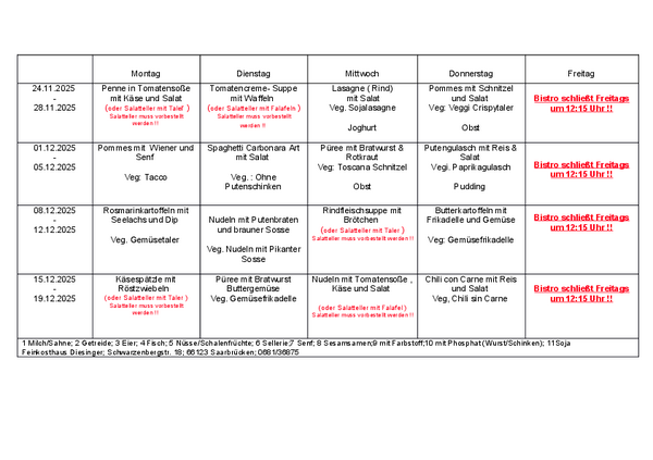 Essensplan unseres Bistros "SG-Ess-Treff"