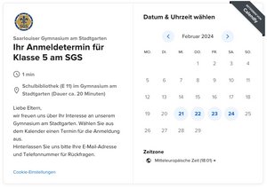 Terminvergabe für die Neuanmeldung Klasse 5 am SGS