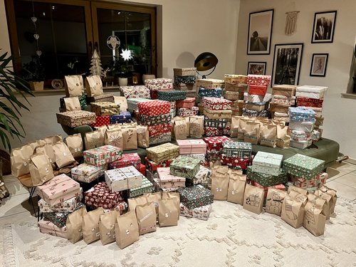 Wie schon im Jahr zuvor wurden die Kartons regional verteilt und so konnten zu Weihnachten 232 Bewohnerinnen und Bewohner saarländischer Einrichtungen beschenkt werden. Die Kartons und Geschenke gingen an die Kinder und Frauen in den Frauenhäusern in Saarlouis, Neunkirchen, Völklingen und Saarbrücken, an das Haus Christophorus in Dillingen, an das Haus Mutter Rosa in Wadgassen und an das Familienzentrum in Beckingen.