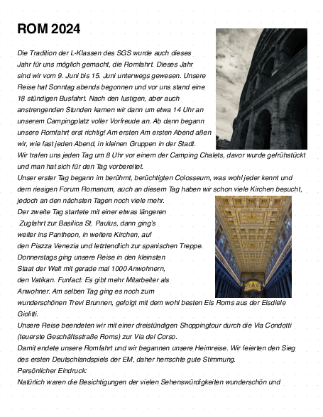 Vom 9. bis 15. Juni 2024 besuchten die Lateinklassen des SGS die Ewige Stadt.