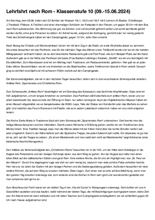 Hierzu haben die Schülerinnen Selma A., Alizée W., Lena B. und Amy K. aus der Klasse 10L1 zwei Berichte verfasst.
