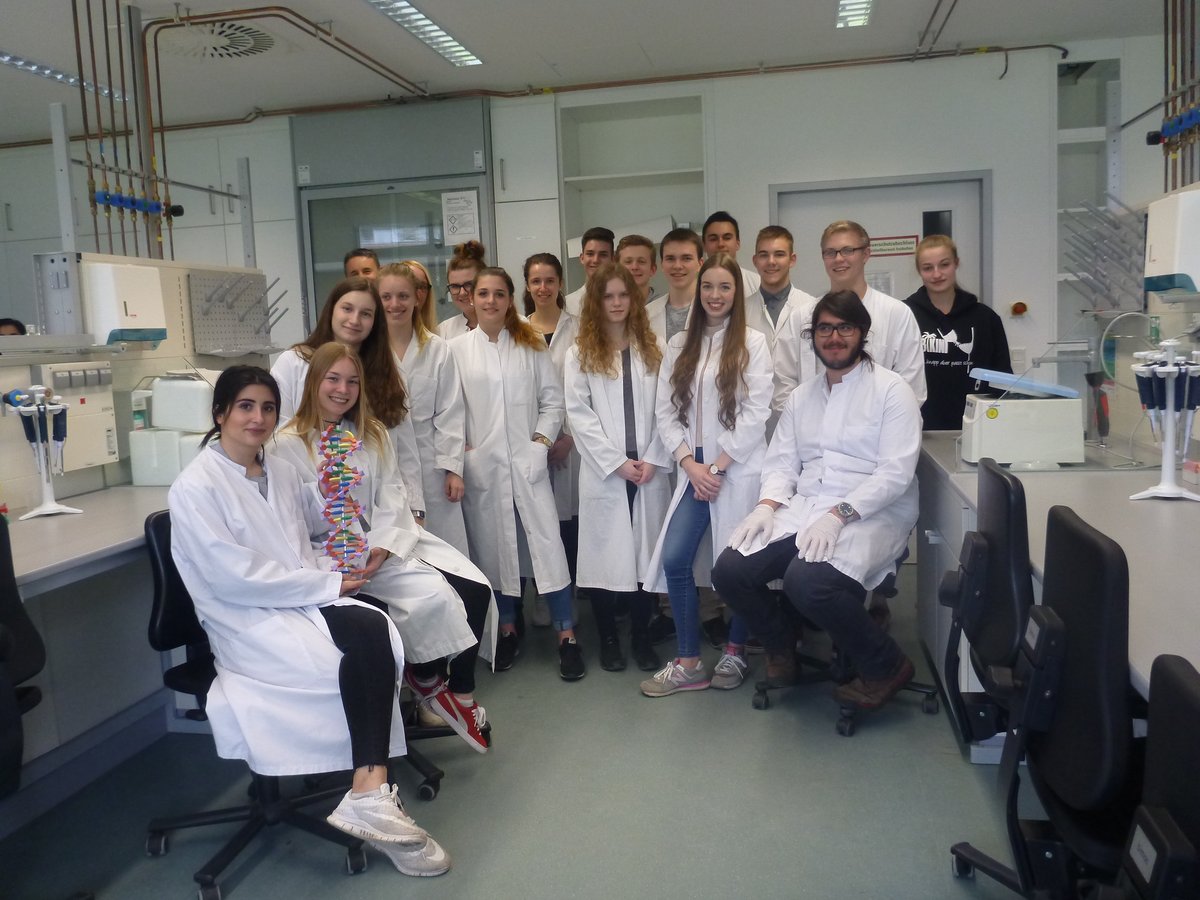 In der Oberstufe führen die Exkursionen dann auch durchaus etwas weiter weg, z.B. zum genetischen Praktikum am KOMM (=Kompetenzzentrum Molekulargenetik) der Uni Homburg oder nach Frankfurt zu den Fossilien des Senckenbergmuseums in Frankfurt. Auch Fließgewässerexkursionen zur Beurteilung des Verschmutzungsgrades eines Gewässers werden durchgeführt.