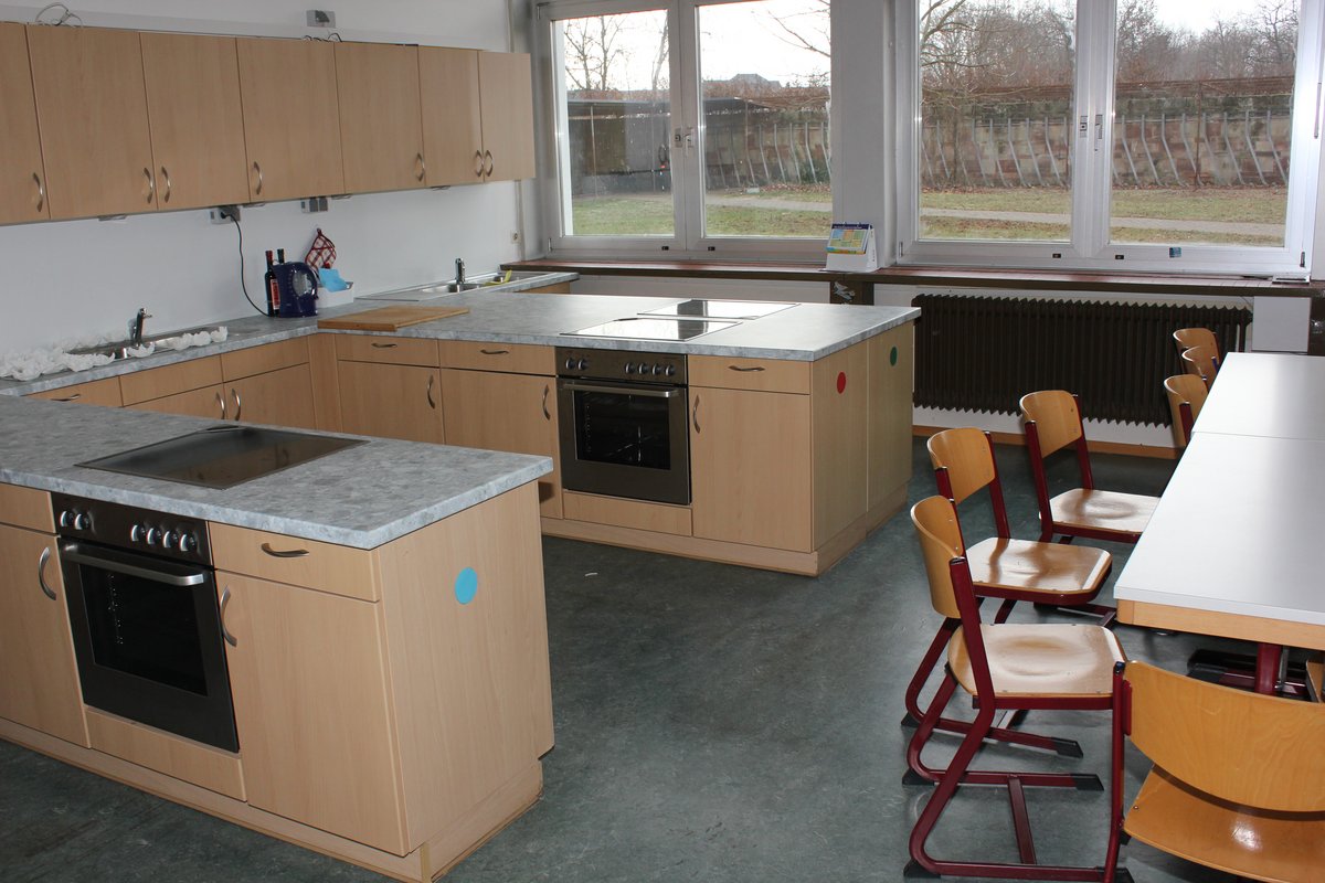Seit 2018 verfügt unsere Schule über eine eigene Schulküche, die vor allem für das Thema "gesunde Ernährung" genutzt wird, das übrigens in der Jahrgangsstufe 5 auf dem Lehrplan im Fach Biologie steht. Die Küche steht aber natürlich allen Jahrgängen zur Verfügung.