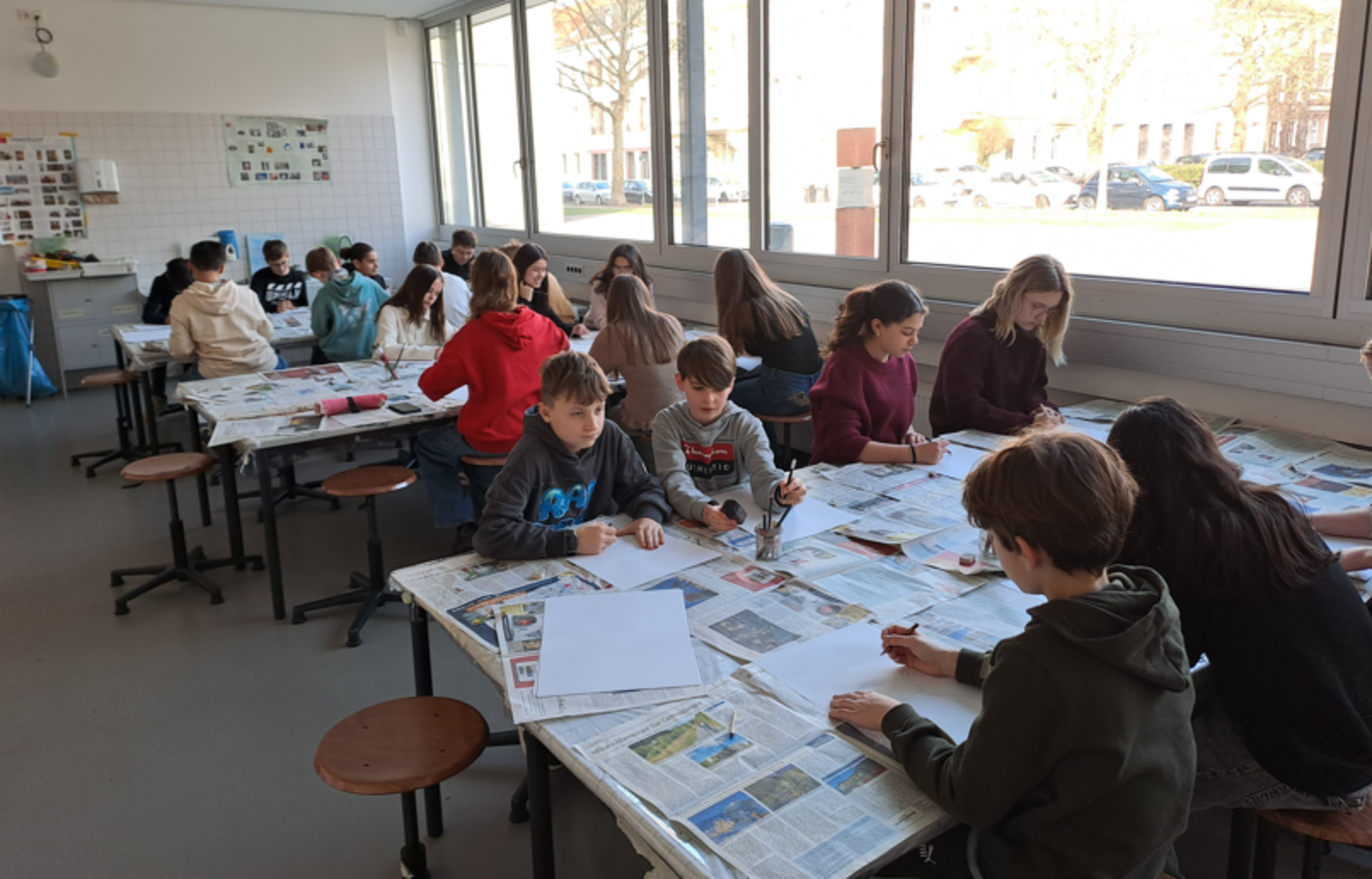 In unserer Landeshauptstadt angekommen, ging es so zunächst in die Moderne Galerie Saar. Dort erwartete uns eine interessante Führung zum Thema „Portraits vom ich, Portraits vom du“. Passend zu diesem Thema stellten die SchülerInnen dann auch gleich im Anschluss selbst ihre künstlerischen Fähigkeiten unter Beweis und malten kreative Porträts ihrer jeweiligen AustauschpartnerInnen.