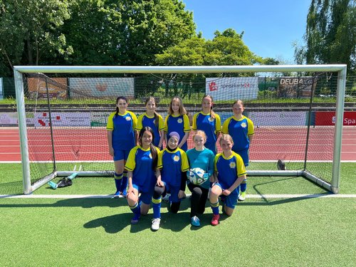 Am 14.05. trat unsere U16 Fußballmannschaft in Merzig zum Vorrundenturnier an und belegte dabei einen starken dritten Platz! Nachdem zunächst das Auftaktspiel gegen das Hochwaldgymnasium deutlich mit 1:5 verloren ging, steigerte sich die Mannschaft von Spiel zu Spiel, sodass Torhüterin Josefina B. in den zwei folgenden Spielen gegen die GemS Weiskirchen (1:0) und die GemS Losheim (5:0) ihren Kasten sauber hielt. Abwehrchefin Franziska L. hielt dabei mit ihren Mitspielerinnen die Abwehr zusammen und bewies auch Torjägerqualitäten. Vorne wirbelten unter anderem Tina H. und Lena G. zusammen mit der sehr treffsicheren Leonie T., die mit insgesamt fünf Treffern beste SGS-Schützin des Turniers wurde.