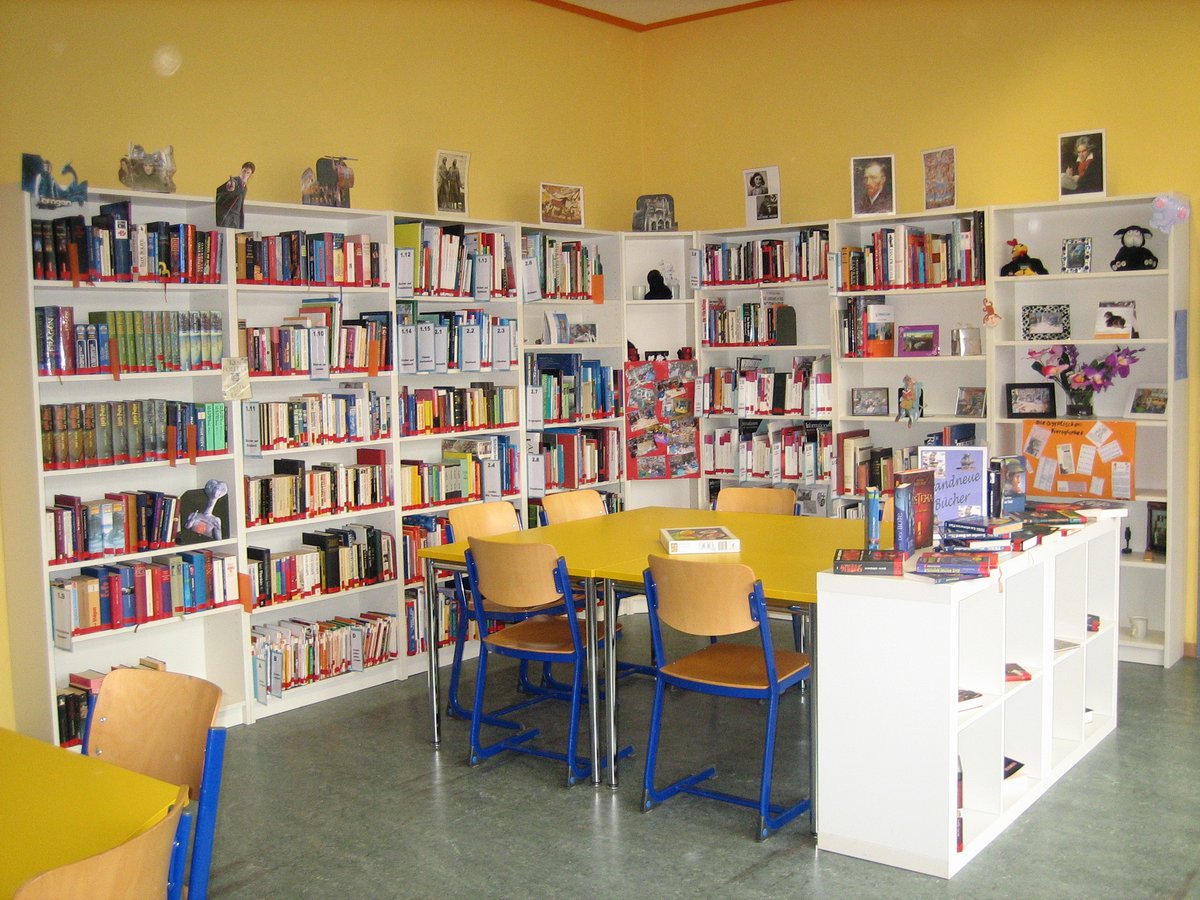 In unserer Schülerbibliothek mit angrenzendem Selbstlernzentrum können unsere Schüler*innen selbstständig arbeiten und nach Herzenslust schmökern. Die Bibliothek verfügt über einen umfangreichen Bestand an Nachschlagewerken, Sachbüchern und Belletristik, der kontinuierlich erweitert und aktualisiert wird.